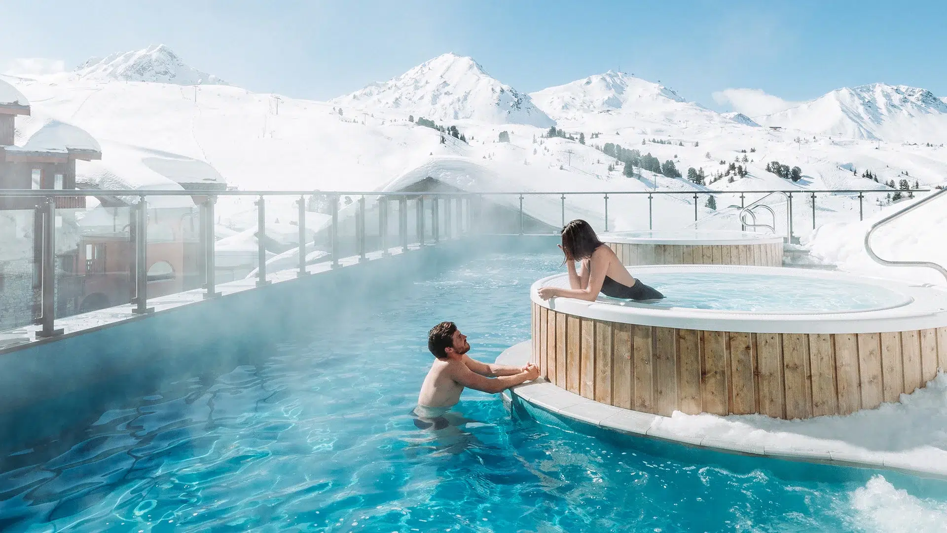 - Belle Plagne : Site piéton chaleureux en bois et lauzes.